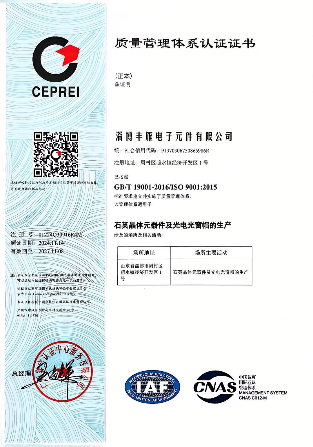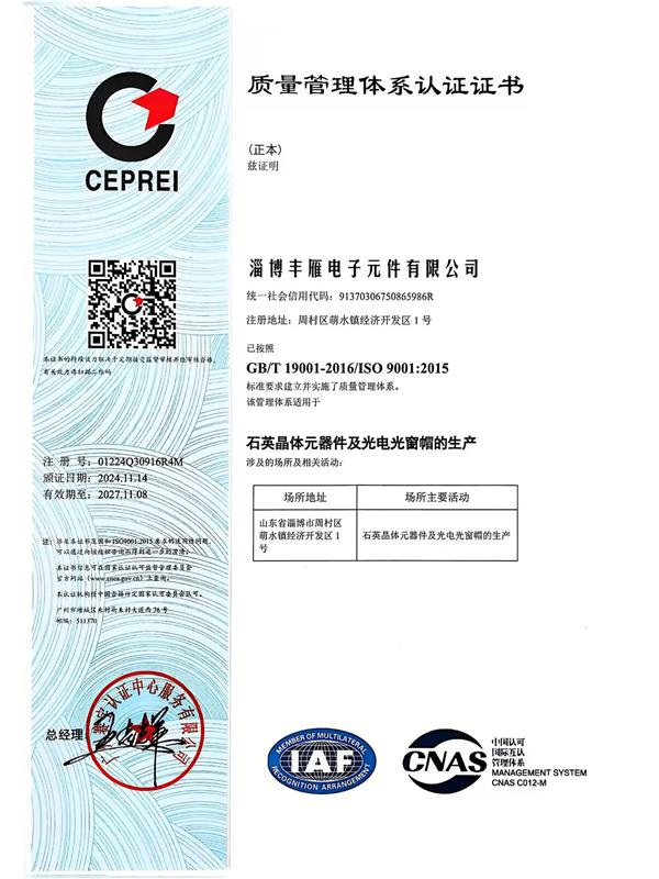 淄博豐雁電子元件有限公司,是一家集研發(fā)、生產(chǎn)、銷售為一體的透鏡管帽、晶體諧振器、晶體濾波器的高新技術(shù)企業(yè)。成立于1992年,坐落于山東省淄博市周村區(qū),注冊(cè)資金1000萬(wàn)元,擁有職工150余人,公司占地35000平方米,其中擁有5000平方的超凈化廠房,并配備了千級(jí)凈化工作臺(tái),確保環(huán)境的凈化度。公司下設(shè)光電事業(yè)部,濾波器事業(yè)部,晶體事業(yè)部等多個(gè)事業(yè)部。專注為光通訊、激光器領(lǐng)域以及各種電子應(yīng)用領(lǐng)域進(jìn)行電子元件配套。公司于1999年通過(guò)了ISO9000質(zhì)量體系認(rèn)證,公司提供的所有產(chǎn)品符合歐盟的R0HS和REACH標(biāo)準(zhǔn)。公司被認(rèn)定為淄博市“專精特新”企業(yè)、“淄博市企業(yè)技術(shù)中心”、省級(jí)“專精特新”企業(yè)、“山東省制造業(yè)單項(xiàng)冠軍”。公司擁有持續(xù)創(chuàng)新的研發(fā)團(tuán)隊(duì),有常年的外聘技術(shù)專家長(zhǎng)期指導(dǎo),并且與國(guó)內(nèi)多所大學(xué)和光電研究所保持長(zhǎng)期合作關(guān)系,確保了產(chǎn)品和技術(shù)的先進(jìn)性,能持續(xù)為客戶提供高質(zhì)量的產(chǎn)品和更好的全方位服務(wù)。